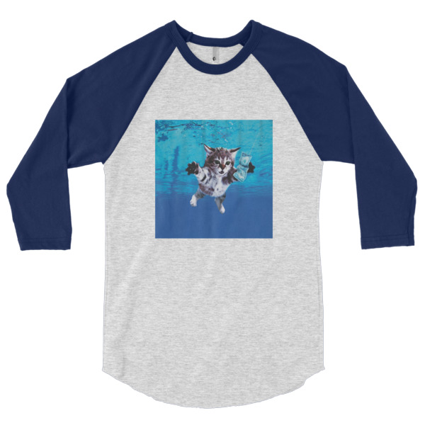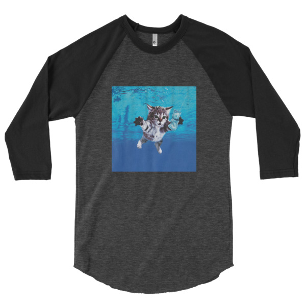 Unisex "Nirvana Cat" 3/4 Sleeve Raglan Shirt (Non-Organic)
